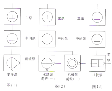 (1)羅茨泵-水環(huán)泵:機組中水環(huán)泵的作用是造成羅茨泵所需的預備真空,一般情況,單級水環(huán)泵極限真空度不高,而目前我國生產(chǎn)的羅茨泵要求的預真空又較高,故實(shí)際上一般不用單級水環(huán)泵作為羅茨泵的前級泵,而用極限壓力較低的雙級水環(huán)泵作為前級泵使用,還可以降低機組的極限壓力。一臺羅茨泵與一臺水環(huán)泵的極限壓力是400P a,可滿(mǎn)足一般的真空需求,但使用范圍受到一定限制,若用兩 臺羅茨泵串聯(lián)再與水環(huán)泵組合,就能大大提高機組的極限壓力(可達25P a)。故在這種類(lèi)型里通常見(jiàn)到的是兩臺羅茨泵串聯(lián)后再用雙級泵作前級泵組成機組。如果需要更高的極限壓力,可用三臺羅茨泵與水環(huán)泵組合,它的極限壓力可達1Pa。